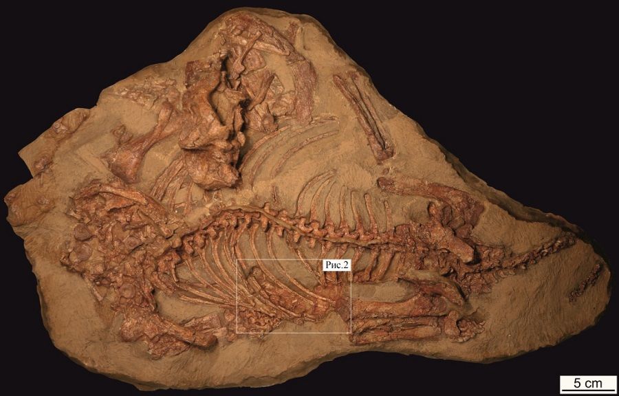 Именно в процессе этой кропотливой работы в области, соответствующей желудочно-кишечному тракту животного, были обнаружены разрозненные мелкие остатки. Как говорится в тексте, «локализация, отличие по структуре и наличие дробленого костного вещества позволяют уверенно интерпретировать образование как фоссилизированное содержимое желудочно-кишечного тракта».