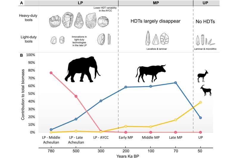 Исследователи подчеркивают, что тяжелые орудия раннего палеолита Леванта были прежде всего связаны с образом жизни, основанным на эксплуатации крупных травоядных, тогда как легкие наборы орудий появились как адаптивный ответ на растущую зависимость от более мелкой добычи.