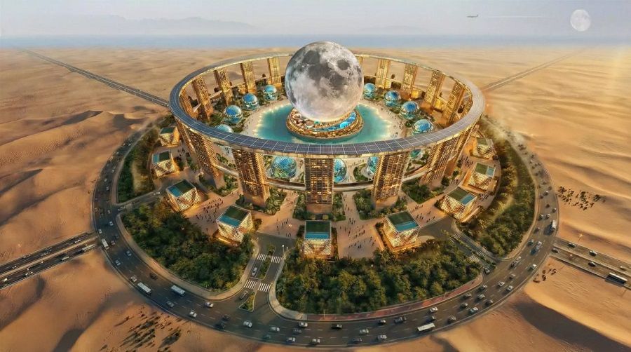 В центре внимания этого грандиозного замысла находится сооружение, которое по своей монументальности может затмить все существующие аналоги. Главным элементом курорта станет самое большое и высокое в мире истинно сферическое здание. Чтобы осознать масштаб, достаточно сравнить его с недавно построенной «Сферой» в Лас-Вегасе. Детище Майкла Беннета, поражающее своими светодиодными поверхностями, имеет диаметр 157 метров и высоту 112 метров. Новая «Луна» будет почти вдвое больше: ее диаметр должен составить 271 метр, а высота достигнет 312 метров. Эта гигантская сфера станет архитектурным ядром, вокруг которого выстроится вся инфраструктура футуристического курорта.