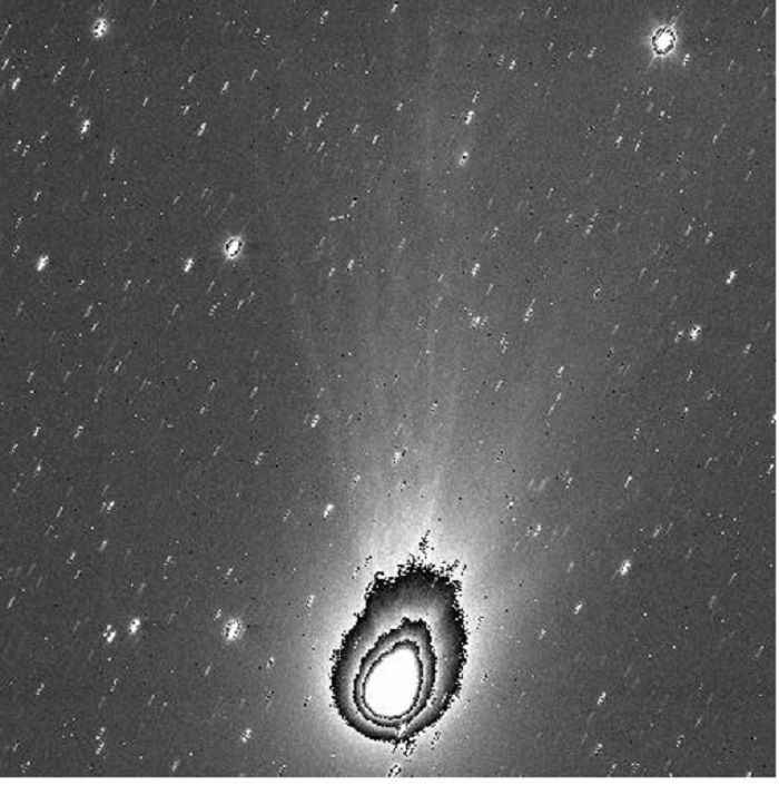 На новом изображении, переданном камерой JANUS, запечатлена комета 3I/ATLAS. Хотя само крошечное ядро кометы остается невидимым для оптики, его присутствие выдает яркое газовое облако — кома, окружающее его подобно сияющему ореолу. От этого ядра простирается длинный хвост, а при более детальном рассмотрении снимок открывает сложную структуру из лучей, струй, потоков и нитей, которые комета выбрасывает в окружающее пространство. Примечательно, что, несмотря на свое межзвездное происхождение, комета 3I/ATLAS ведет себя в точности как обычная комета Солнечной системы, нагреваясь под лучами Солнца и сбрасывая с себя пыль и газ.